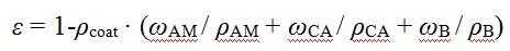 孔隙率是指電極涂層中孔洞所占體積分?jǐn)?shù),可通過涂層的體密度,涂層各組分質(zhì)量百分比和涂層組分真密度來計(jì)算得到,由式(2)表示。