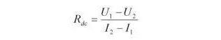 電池滿充電后,以0.2C放電10s,測試電壓為U1,電流I1.然后以1C放電1s,此時電壓為U2,電流I2.那么電流直流內阻為: