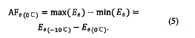 溫度在-10℃時(shí)的主效應(yīng)最大,在0℃時(shí)的主效應(yīng)最小,則溫度對(duì)電池老化速率響應(yīng)AF的主效應(yīng)計(jì)算式如(5)所示,其結(jié)果為0.551?