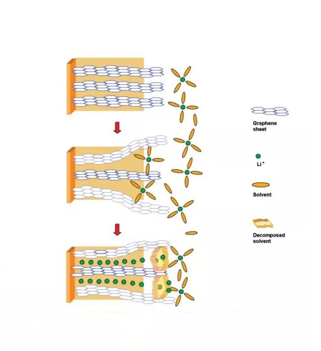 電解液的成分決定了負(fù)極表面形成SEI膜的好壞。LiPF6與EC或EC的混合物形成的電解液之所以能在鋰離子蓄電池上使用,主要是首次放電過程中能在石墨電極上形成穩(wěn)定有效的SEI膜,支持鋰離子的插入和捅出同時(shí)阻止電解液的進(jìn)一步氧化和還原,提高電解液的穩(wěn)定性。