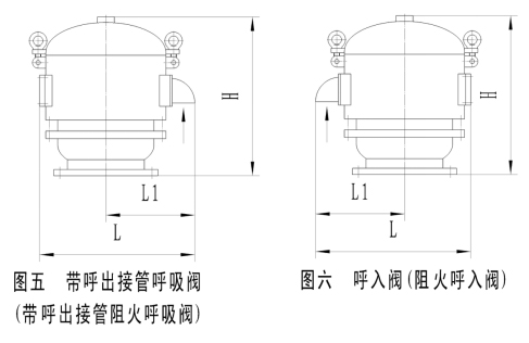 5)HLBV5(HLBFV5)型呼吸閥(阻火呼吸閥)見表四、圖五。