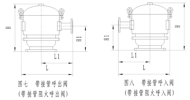 7)HLBV7(HLBFV7)型呼吸閥(阻火呼吸閥)見表五、圖七。