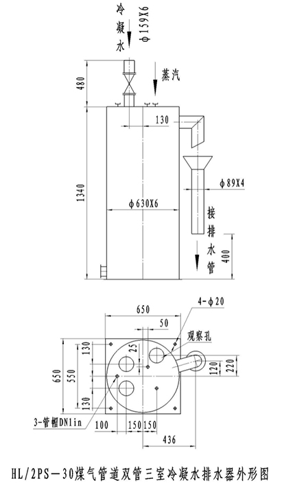 HL/2PS-30型煤氣管道雙管三室冷凝水排水器