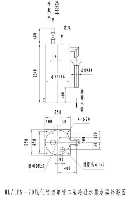 3、插入敝開室的DNl″蒸汽管,視南北方地區(qū)的氣體條件決定是否需要接上外部蒸汽管,南方地區(qū)不接蒸汽管時需用管帽蓋上。