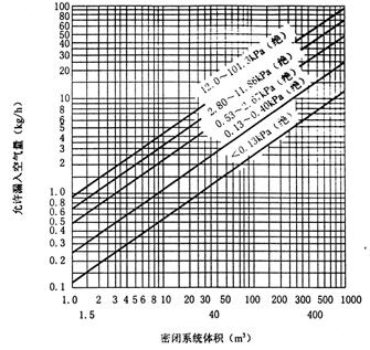 圖A.0.1 真空系統(tǒng)漏入空氣量計算曲線